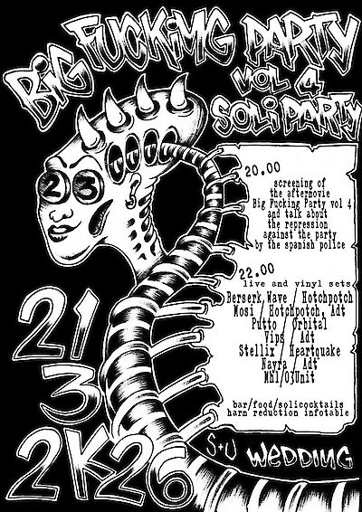 Screening / Talk / A/V installation / Live&Djsets / Küfa / Solicocktails & drinks / harm reduction table
