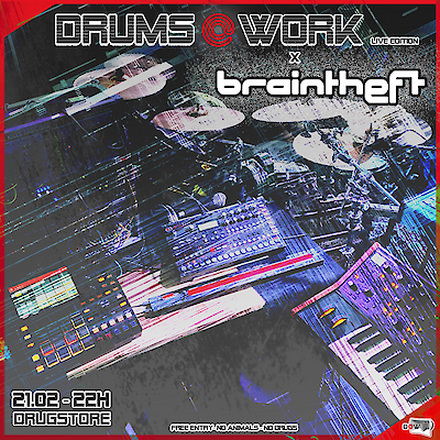 We’re thrilled to welcome Braintheft back for another Drums@Work – Live Edition. We return to our beloved Drugstore with our D@W System, delivering low-end pressure for Berlin’s legendary live dub duo as they premiere material from their soon-to-be released LP.