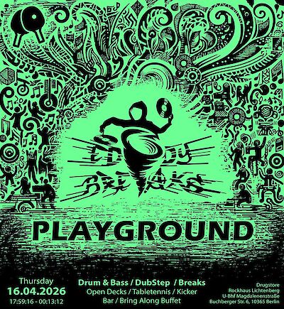 Liebe Freunde der Breakmusik, liebe Tischtennisspielende, Kickernde, und nicht zuletzt Liebende der Getränke, wir trommeln und bassen zusammen zum April-Playground!