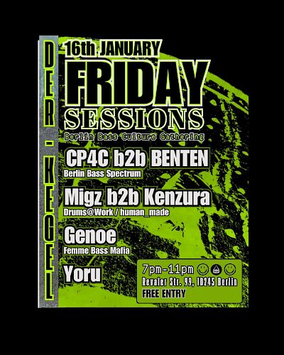 Friday 16.01.2026 19:00 Der Kegel (Revaler Str. 99, 10245 Berlin - Friedrichshain) Breakbeat/BigBeat Drum&Bass Garage/Grime/Dubstep Jungle