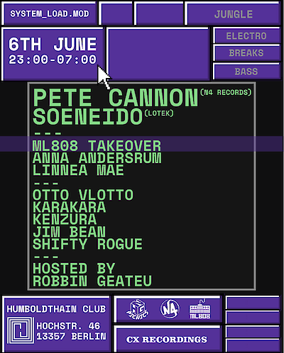 Saturday 06.06.2026 23:00 Humboldhain Club (Hochstraße 46, 13357 Berlin - Wedding) Techno/House/Electro Garage/Grime/Dubstep Hardcore/Rave Breakbeat/BigBeat Jungle
