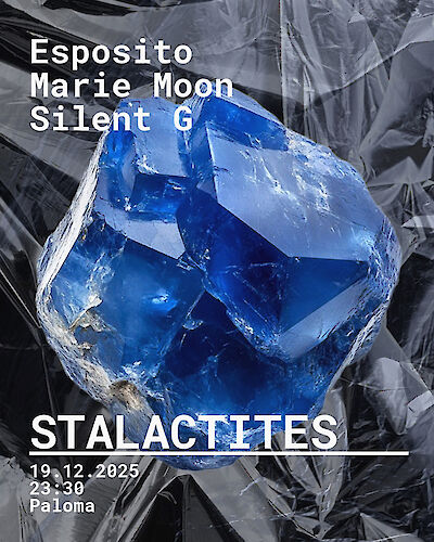 STALACTITES is back at Paloma with its winter edition. This time, we are extremely excited to welcome Esposito, co runner of the Berghain series REEF. Marie Moon, who you might know from her numerous sets at Renate oder Kater, will be on closing duties. Support comes from STALACTITES resident Silent G.