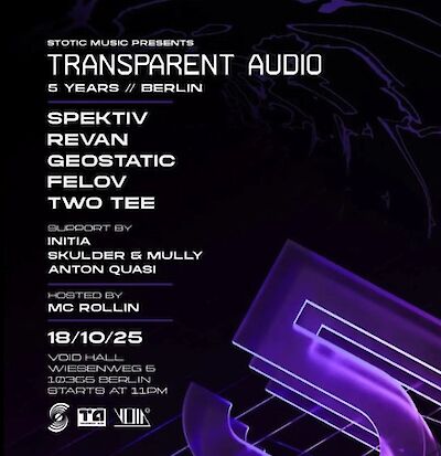 Stoic Music pres. 5 Years Transparent Audio with Spektiv, Revan, Geostatic, Felov, Two Tee